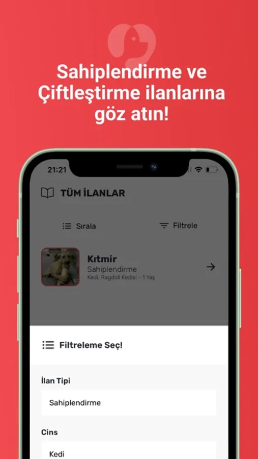 Kitty Kitty'e kaydettiğiniz evcil hayvanlarınızı doğrudan sahiplendirme sayfasına kaydedebilirsiniz. Bu sayede mevcut evcil hayvanlarınızı listeleyerek sahiplendirebilirsiniz veya diğer ilanlardan yeni evcil hayvan sahiplenebilirsiniz. Çiftleştirme ilanları ile sistemdeki kayıtlı evcil hayvanları filtreleyerek en uygun çiftleştirme adayını bulabilirsiniz.