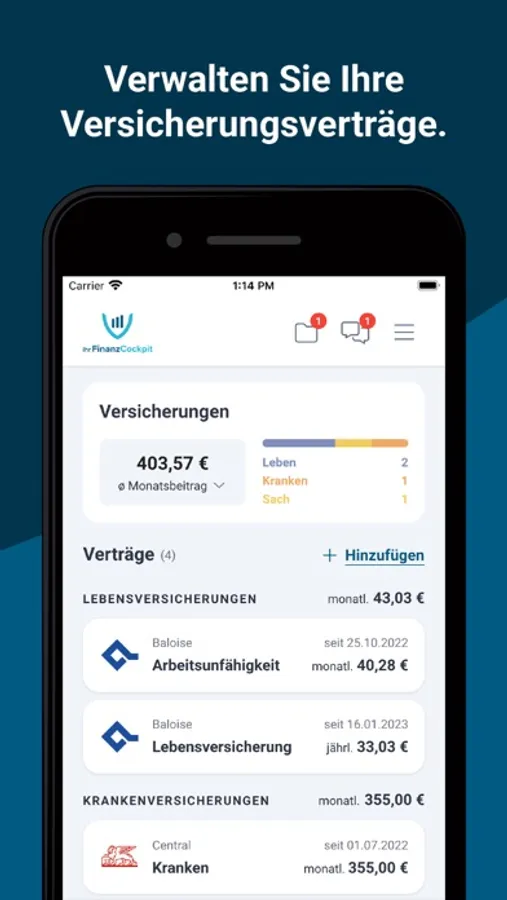 Mit der App Ihr FinanzCockpit haben Sie Ihre Versicherungen, Investmentdepots und die Vermögensverwaltung im Griff. Alles auf einen Blick. Tagesaktuell und transparent. Das beste Werkzeug für Kunden unabhängiger Versicherungsmakler und Finanzprofis. Sie haben Verträge bei verschiedenen Versicherungen, außerdem Investmentdepots und/oder eine Vermögensverwaltung? Dann laden Sie sich jetzt den FinanzCockpit herunter und bündeln Sie alle Informationen in einer App. Ihr FinanzCockpit ist ein Service Ihres persönlichen Beraters.