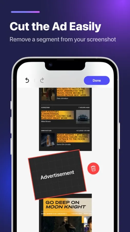 Auto edit and stitch screenshots that overlapping