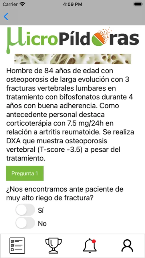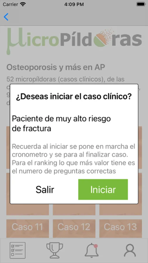 Cada caso clínico se presenta de forma breve, al alumno se le