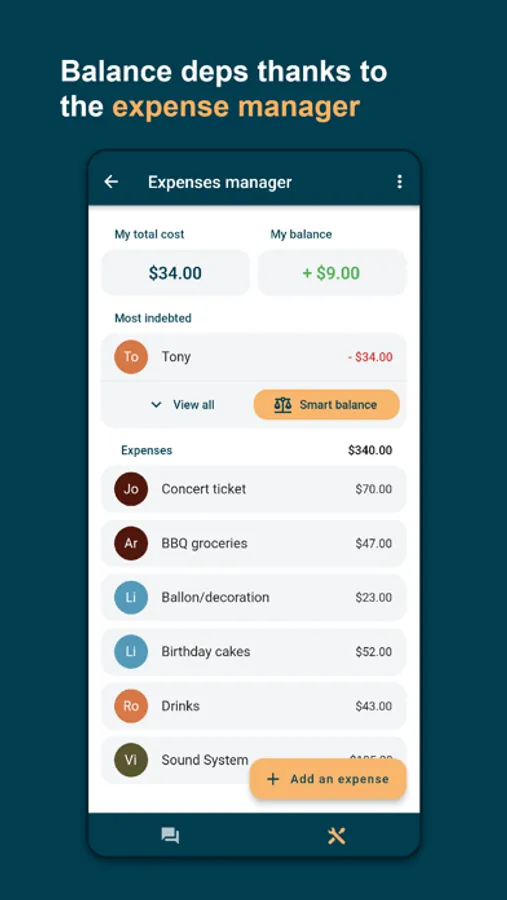 - Expense Manager with Automatic Balancing: Track expenses and automatically balance fees among participants.