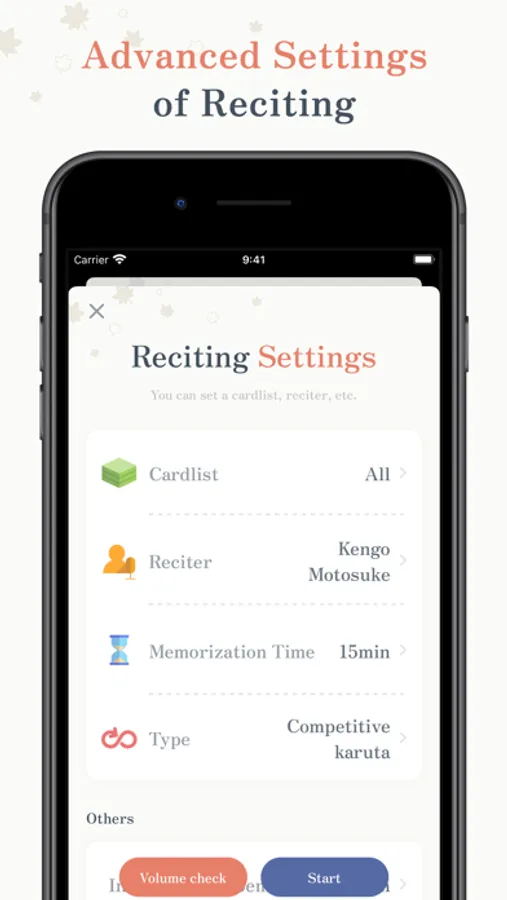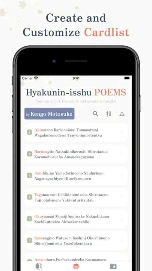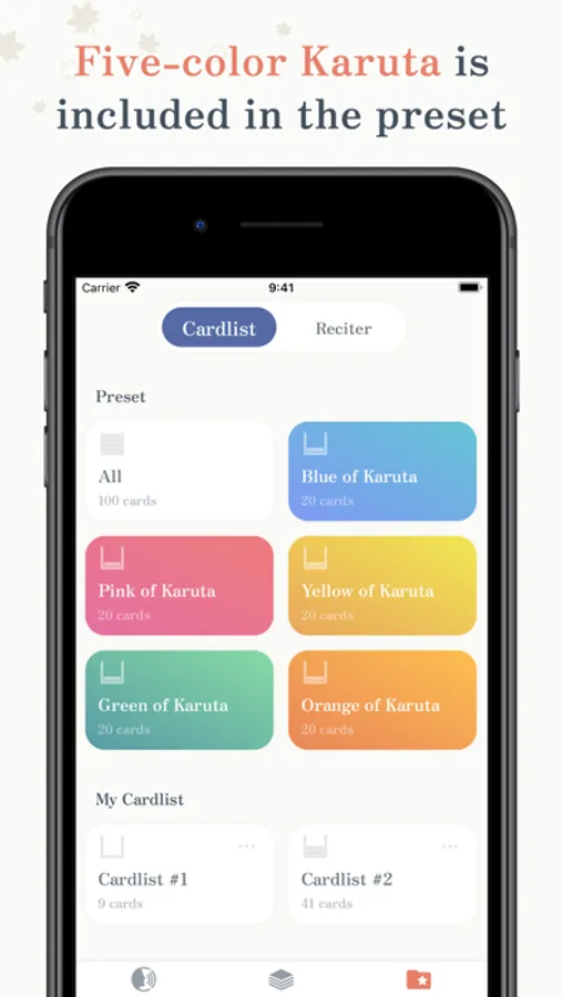You can select the card to be used for reciting from Hyakunin-isshu, and customize the cardlist to suit your own use.