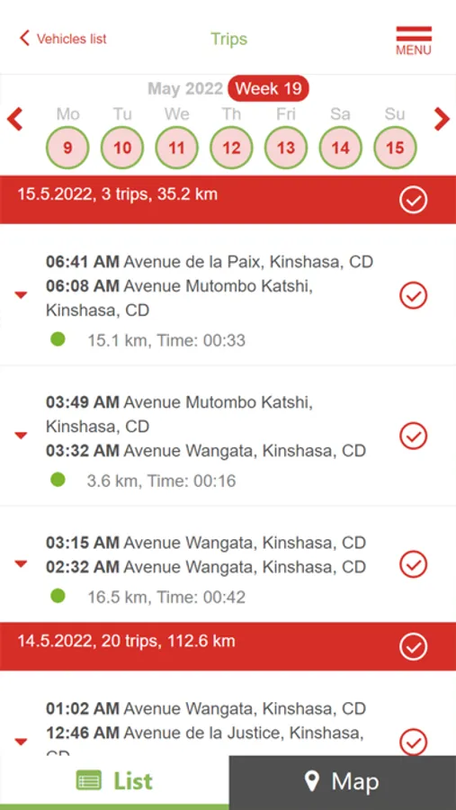 - view individual trips and drivers on maps