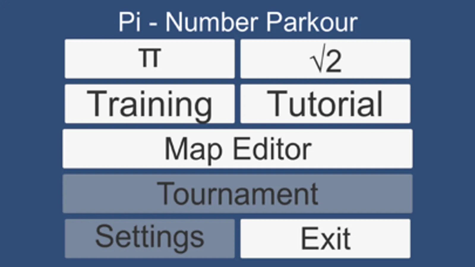 In Pi, you can play on a level out of digits. All of the digits are of different platform types. The Number Pi and the square root of 2 are also levels. There is a map editor, where you can create your own levels. But it isn't as easy as it seems, because you can fall through 8 and 2. There are also platforms for the letters A - G.