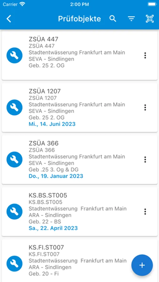 Die Bilfinger Check App erlaubt dem Benutzer Prüfprotokolle für verschiedene Objekte zu erstellen. Dabei kann der Nutzer neue Objekte erstellen und vorgefertigte Fragenkataloge an diese anhängen.
