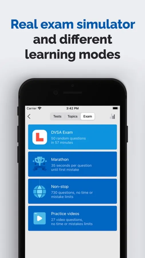 - unlimited mock tests which are just like the actual DVSA exam (nothing will surprise you later!)