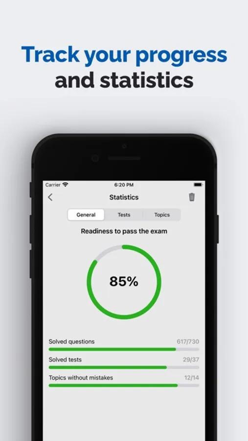 - advanced learning statistics: a special algorithm will measure your level of readiness to take the exam;