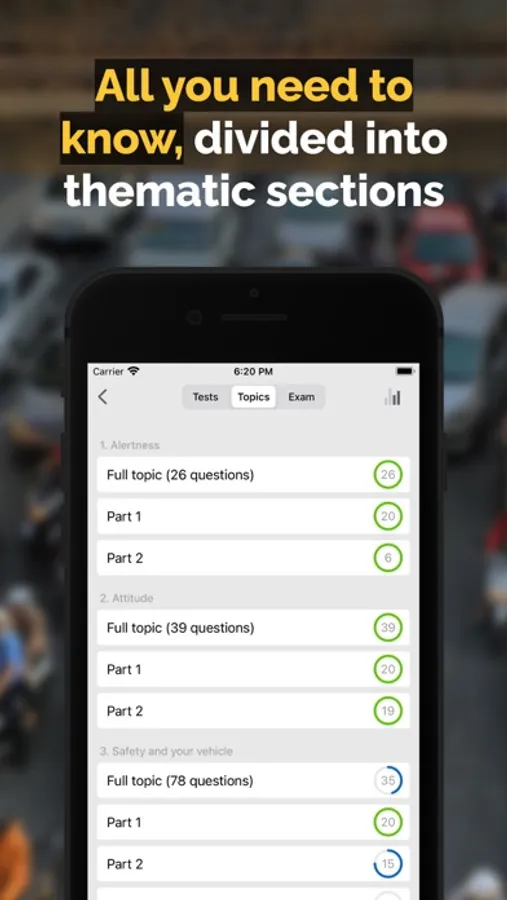 - different learning methods: by topics or in different modes, thanks to which thousands of users have passed their driving test on the first try - effortlessly and for free!