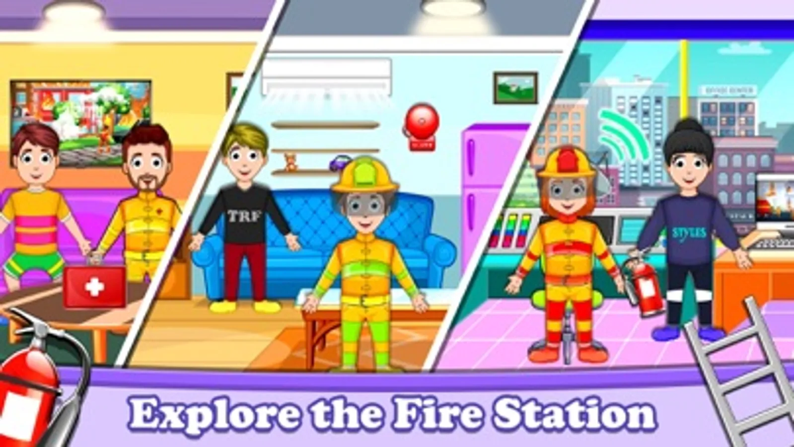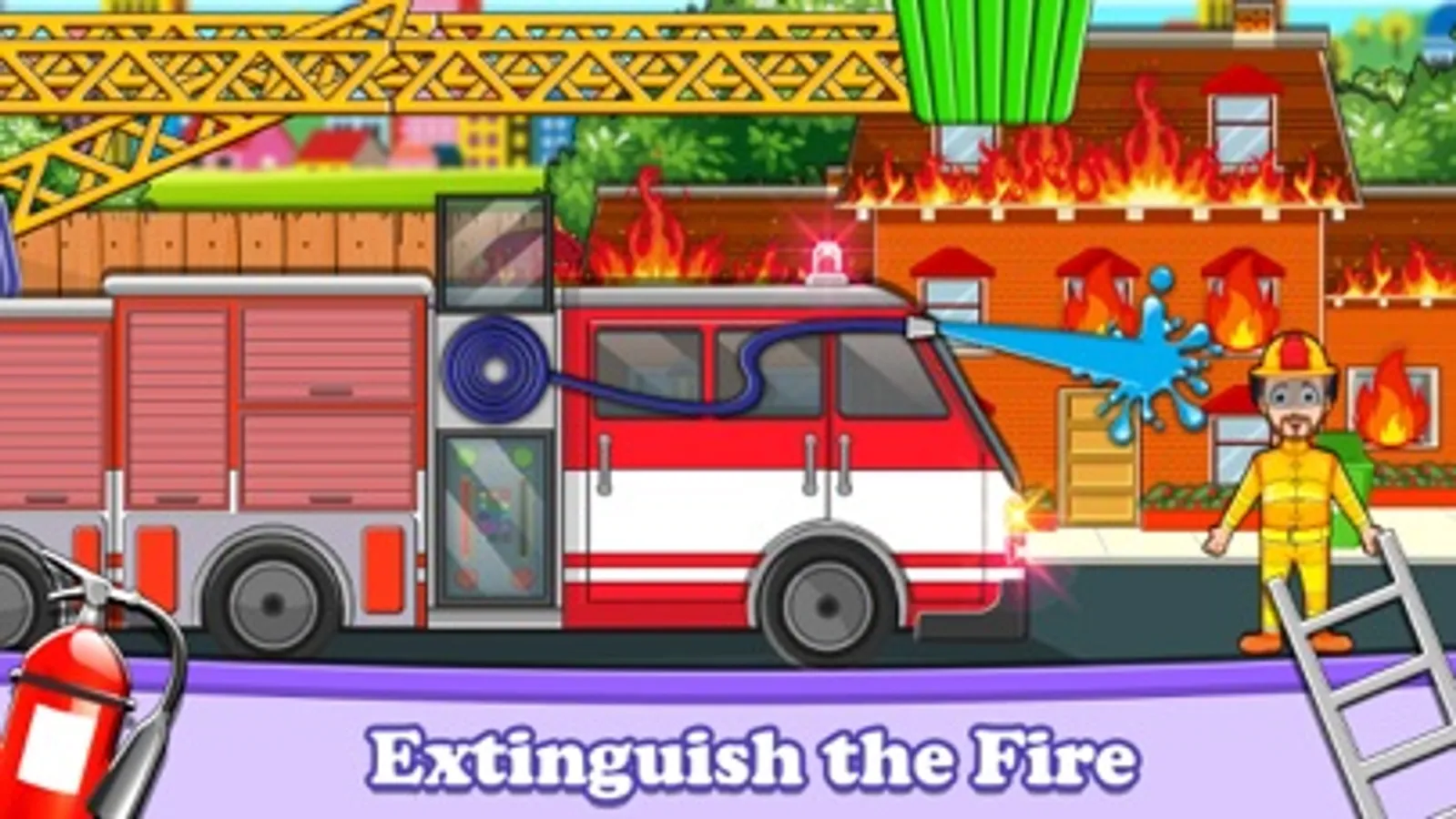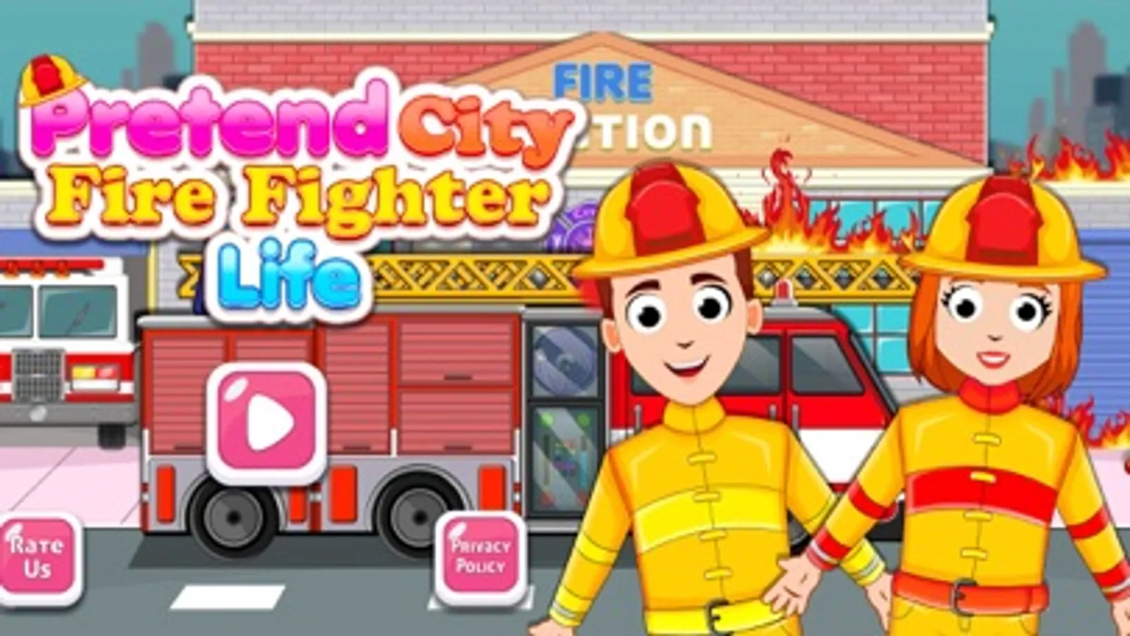 What is that smell? Is something burning out in the city? Oh no call the fireman, apartment next to me is on fire. But wait, why we should call the fireman. When we can be the firefighter of the city. One of the most popular pretend 2d games creators. They are introducing you "Pretend City Firefighter Life" the firefighter game. This fire safety and fire escape game are all in one of the firefighter games.