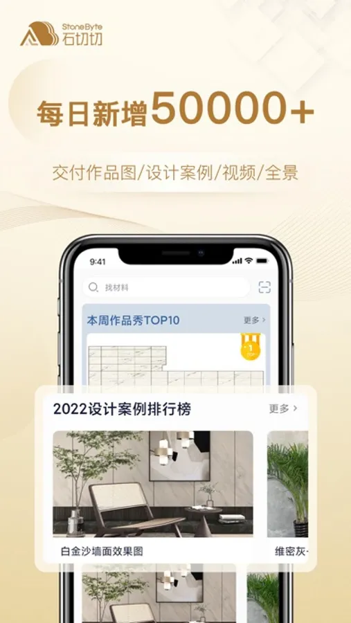 石切切APP依托链石科技智能制造实力,为设计师提供2万+高清大板、2400+真石样品、每日新增5万+设计素材的一款专为设计师选材而生的APP,协助设计师精准选材、高效索样、成品定制等。数字化全链赋能,为用户提供高效率、低成本的石材成品数字化定制服务。