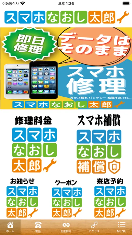 スマホ修理、ガラスコーティング施工を行うスマホなおし太郎広島店のアプリです。