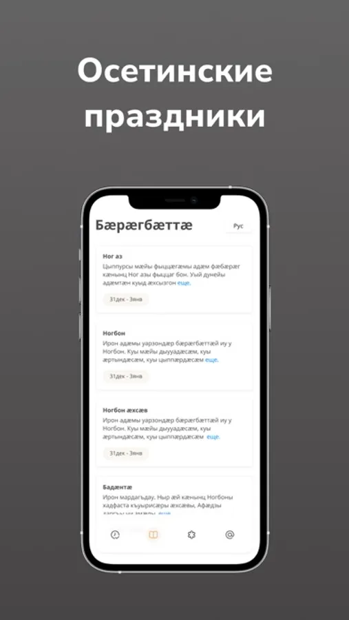 Описания к традиционным событиям составлены на двух языках – русском и осетинском. Для удобства пользователей они разделены по датам.