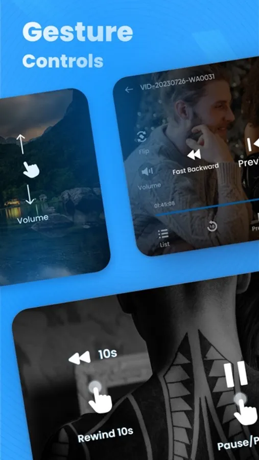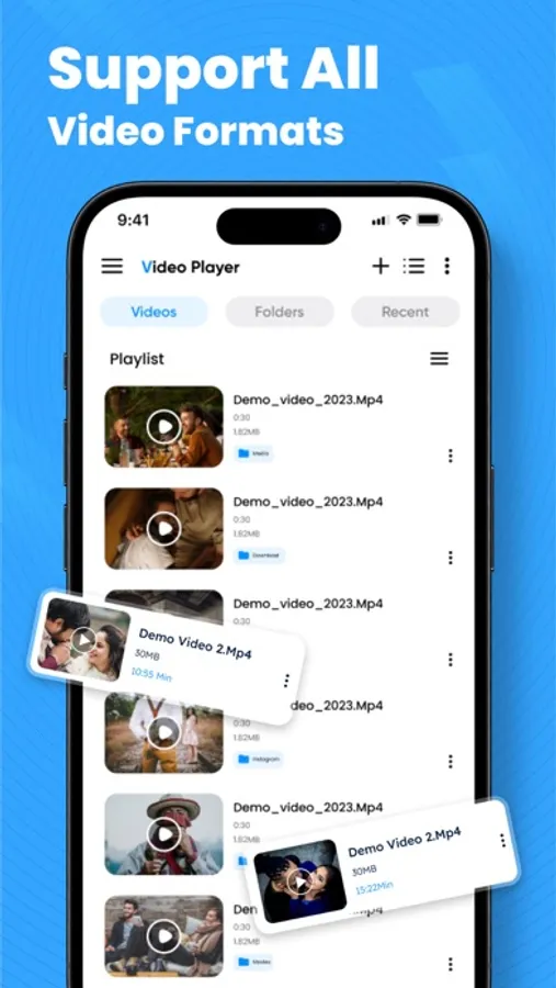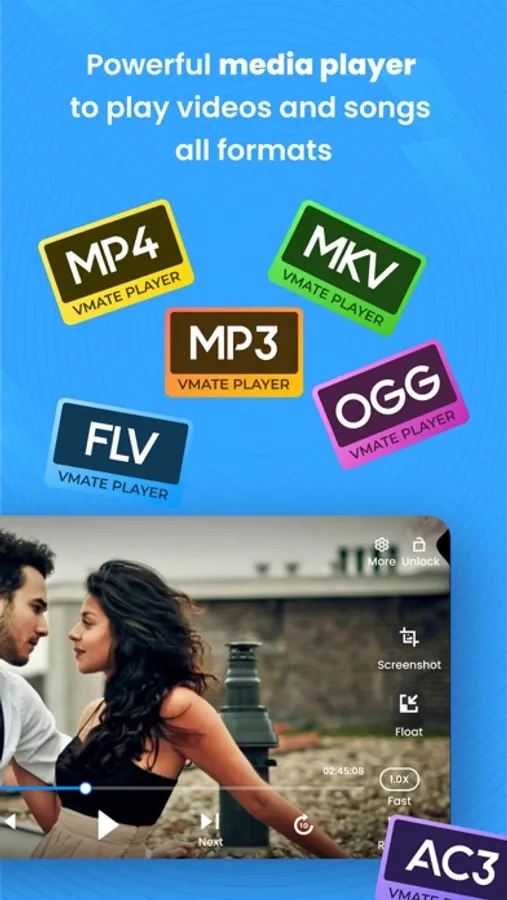 ● Video player supports all video formats including MP4, MOV, M4V, MKV, WMV, RMVB, FLV, AVI, 3GP, TS etc.