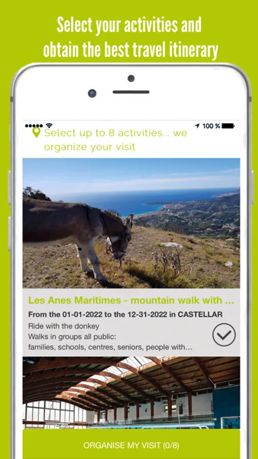 Fill in your profile, submit your centres of interest and discover all leisure activities available (restaurants, boutiques and shops, excursions, workshops) that suit you.
