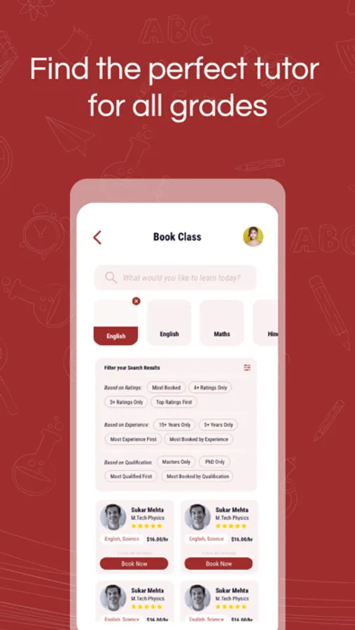 • Search for tutors – identify your tutors for 4 curriculums teaching across all grades and subjects. Book based on transparent feedback from other students and parents