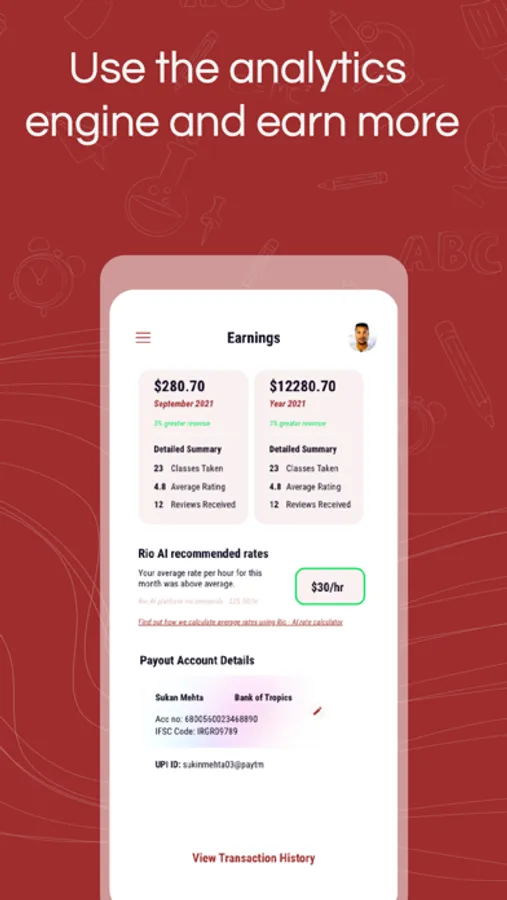 • Set your own teaching rate and leverage RIO analytics to maximize your income.