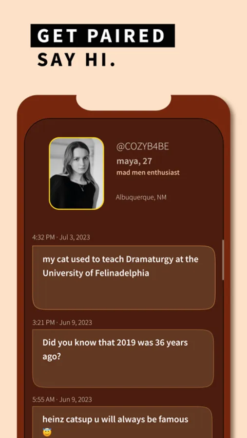 We believe that genuine connections deserve undivided attention, and that's why we're introducing our revolutionary 1:1 pairing. When you connect, it's exclusive – no noise, no distractions. Unfold profound, intimate conversations.