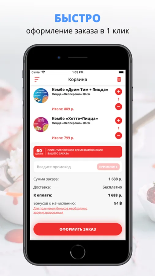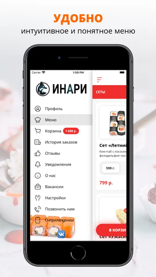 Скачивайте наше приложение, оформляйте заказ и наслаждайтесь любимой едой, где бы Вы ни были! Приятного аппетита!
