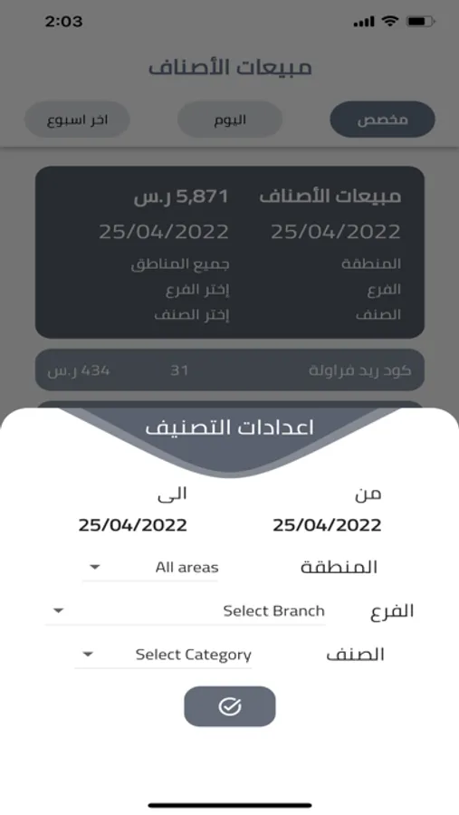 تطبيق اوبوس يتيح لك متابعة المبيعات الخاص بعملك حسب مبيعات الافرع او مبيعات الاصناف,