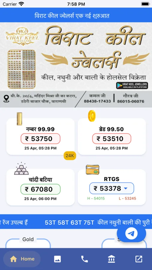 Virat Keel Jewellers app for live market rate and live MCX rate and new and beautiful jewellery designs