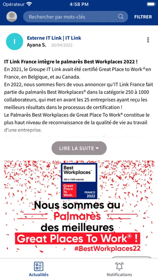 Grâce à l’application MyLINK, obtenez des informations exclusives sur les actualités de l’entreprise, les recrutements du moment et plus encore.