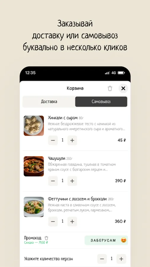 — Быстрый заказ с мгновенным подтверждением через приложение.