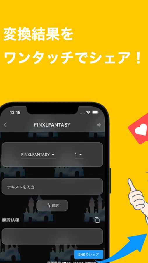 2,翻訳,変換した日本語をSNSでワンタッチでシェアできます。