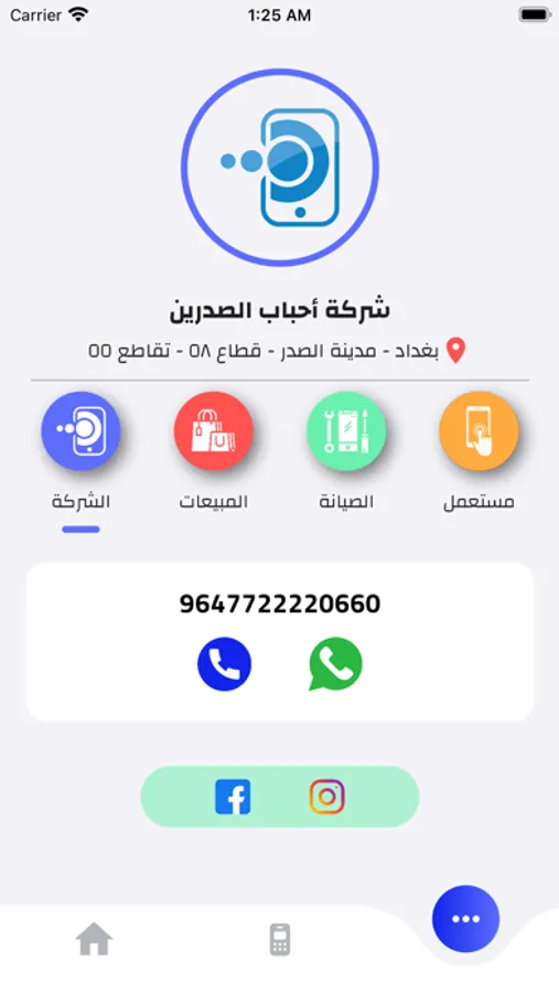 شركة أحباب الصدرين لبيع أجهزة الموبايل الجديدة والمستعملة وصيانتها وبيع بطاقات الشحن.