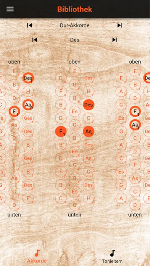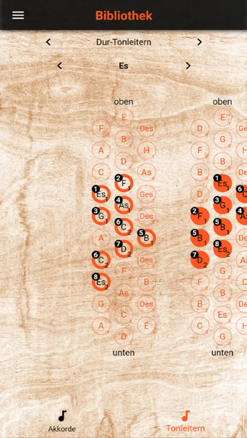- Akkord-Listen und Tonleitern, egal wie das Instrument gestimmt ist.