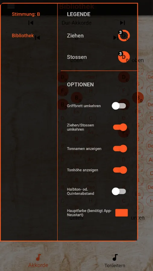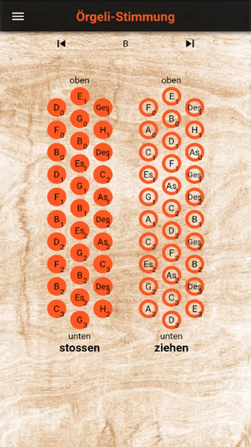 - Die Örgeli-Stimmung gilt für die gesamte App und sollte am Anfang richtig eingestellt werden.