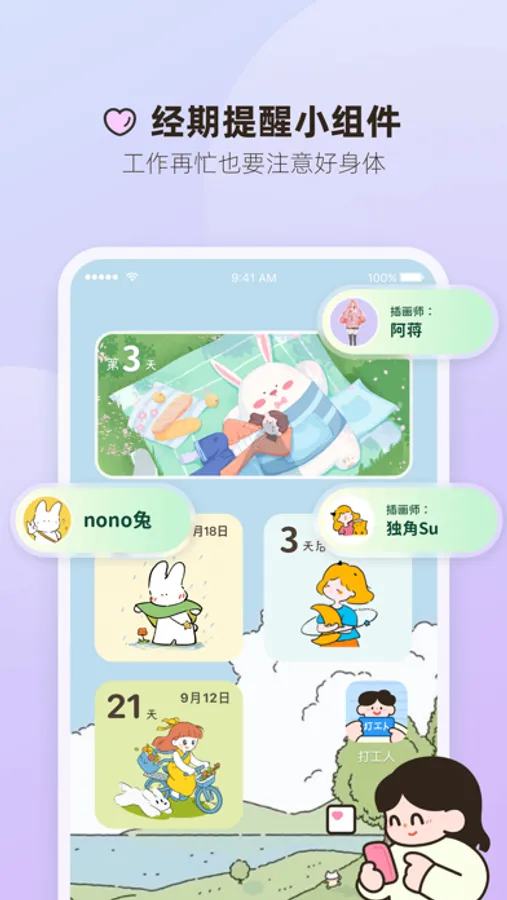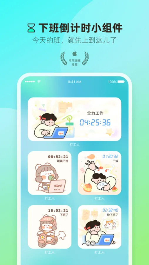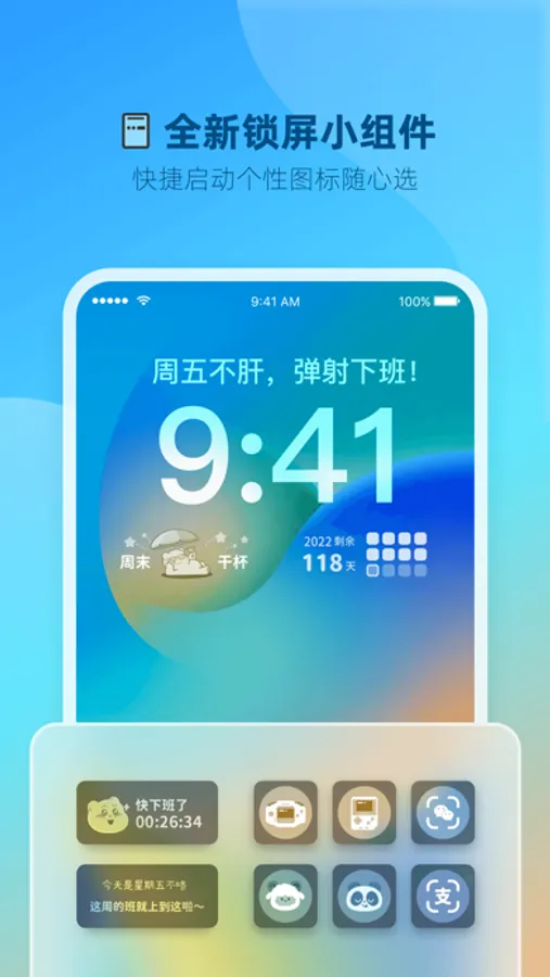 有下班倒计时,周五日历,打工人周历,生理期提醒等小组件。