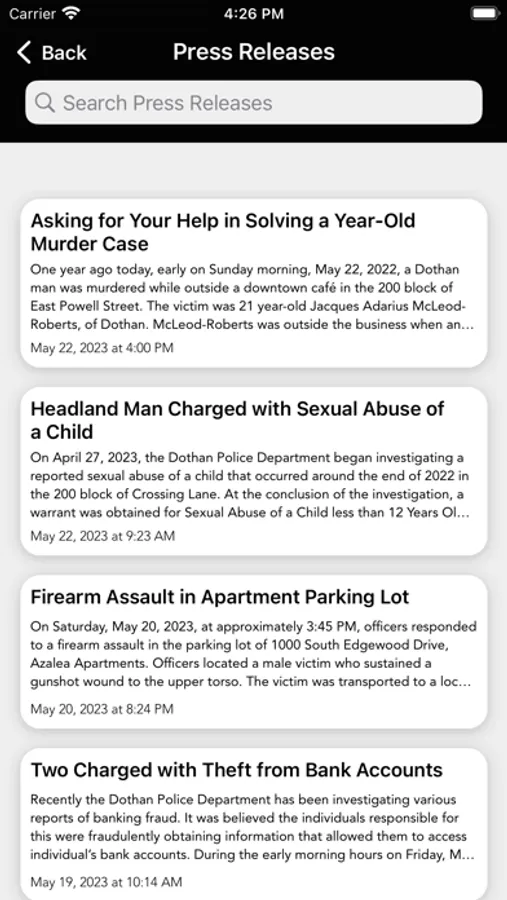 The Dothan County Sheriff’s Office mobile application is an interactive app developed to help improve communication with area residents. The Dothan County Sheriff App allows residents to connect with the Dothan County Sheriff’s Office by reporting crimes, submitting tips, and other interactive features, as well as providing the community the latest public safety news and information.
