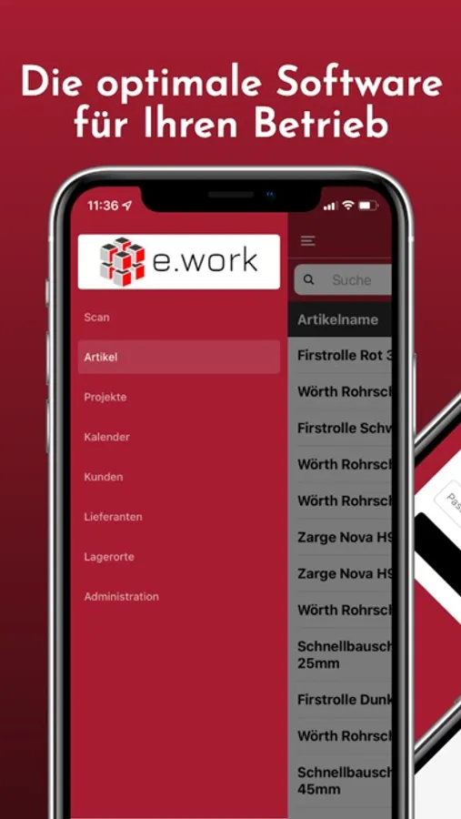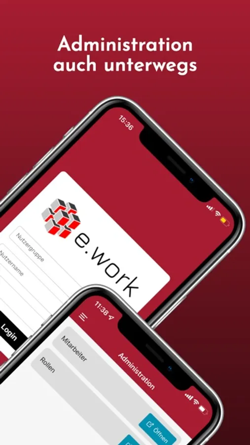 Im Zusammenspiel mit der Desktopanwendung bietet die e.work App insbesondere folgende Funktionen: