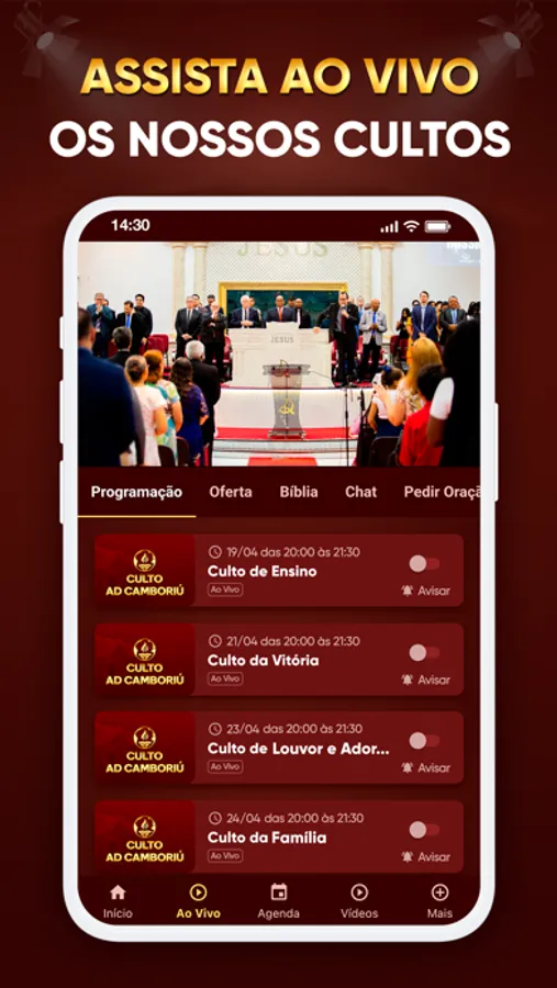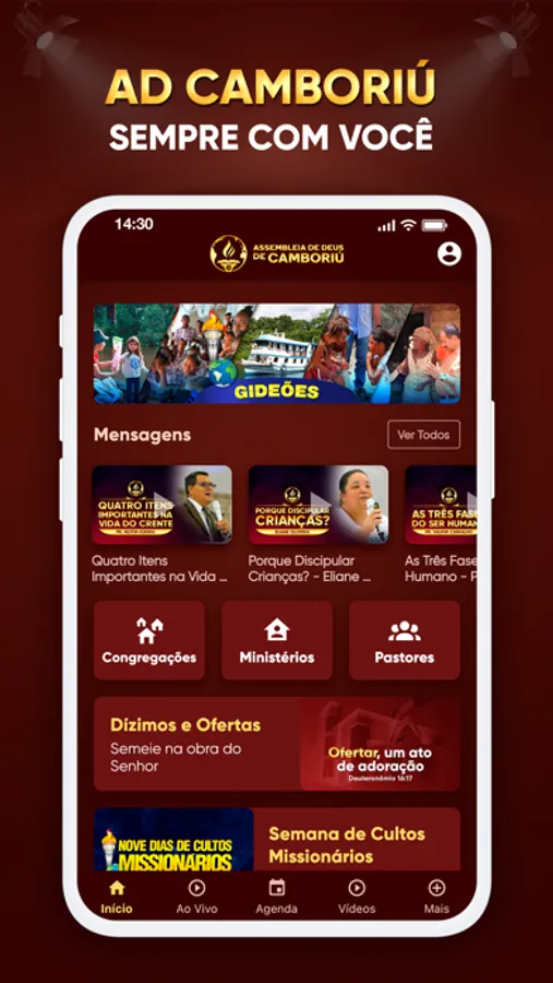 Com o aplicativo da Assembleia de Deus de Camboriú, você fica por dentro de tudo que acontece na Igreja e acessa de forma interativa a palavra de Deus.