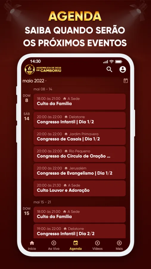 Assista aos vídeos e aos cultos ao vivo realizados na templo sede. Conheça nossa agenda e saiba quais serão os próximos eventos.