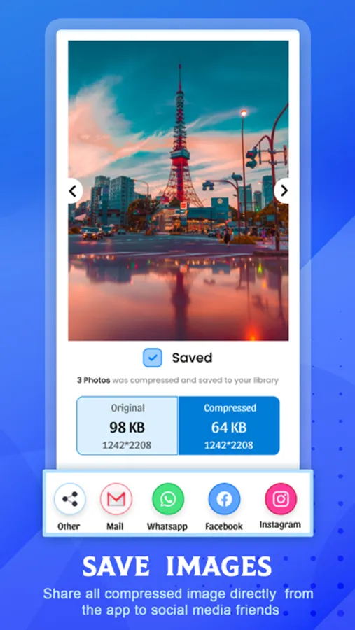Photo Compressor: Compress Photo app's main purpose is to compress, crop, and resize images into a fixed size as per your requirement and also have the ability to share them with your email, and social networking platform easily.