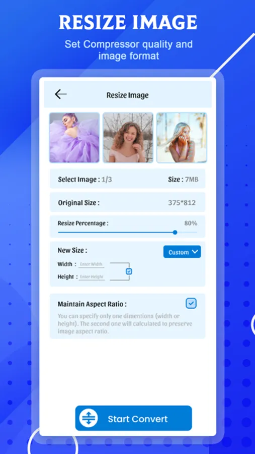 Compress Image app will reduce image size from MB to kb or any size you need.