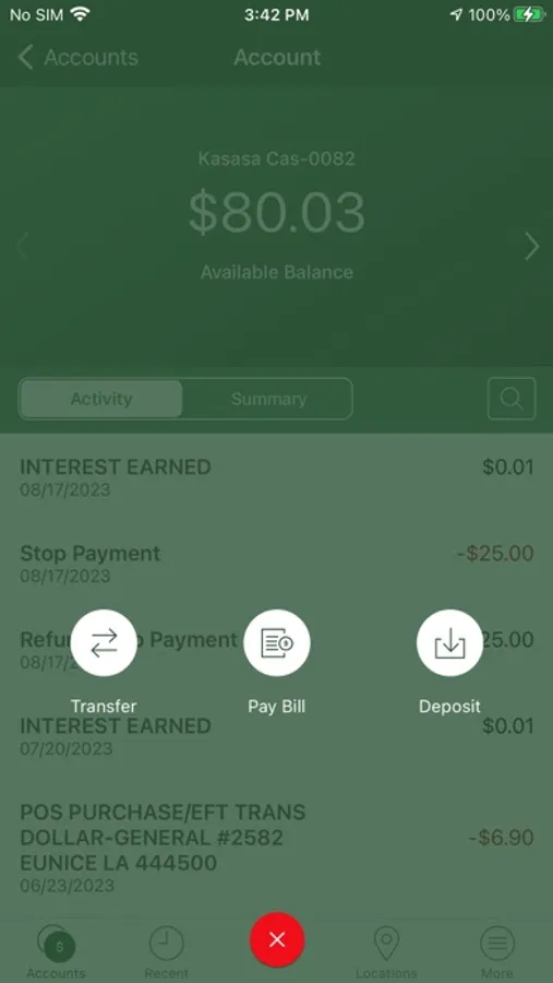 - Check your latest account balance and search recent transactions by date, amount, or check number.