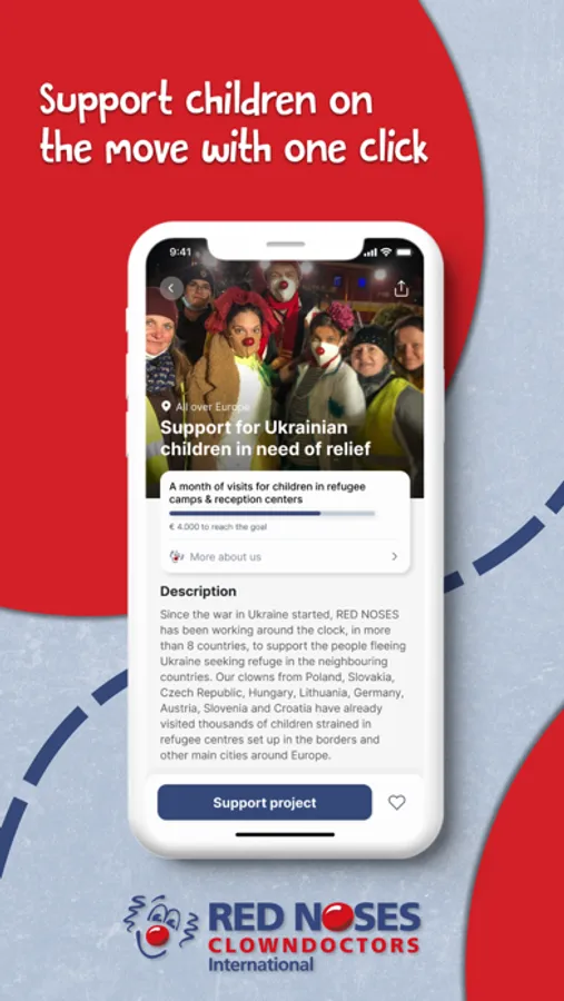 Support children on the move and send our healthcare clowns to help where it’s needed the most. Red Noses brings joy and laughter to the world, and you can finally take part in it.