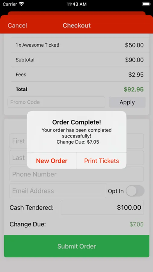 - Create orders and accept cash or credit cards (certain audio card readers are supported, see our website for more details)