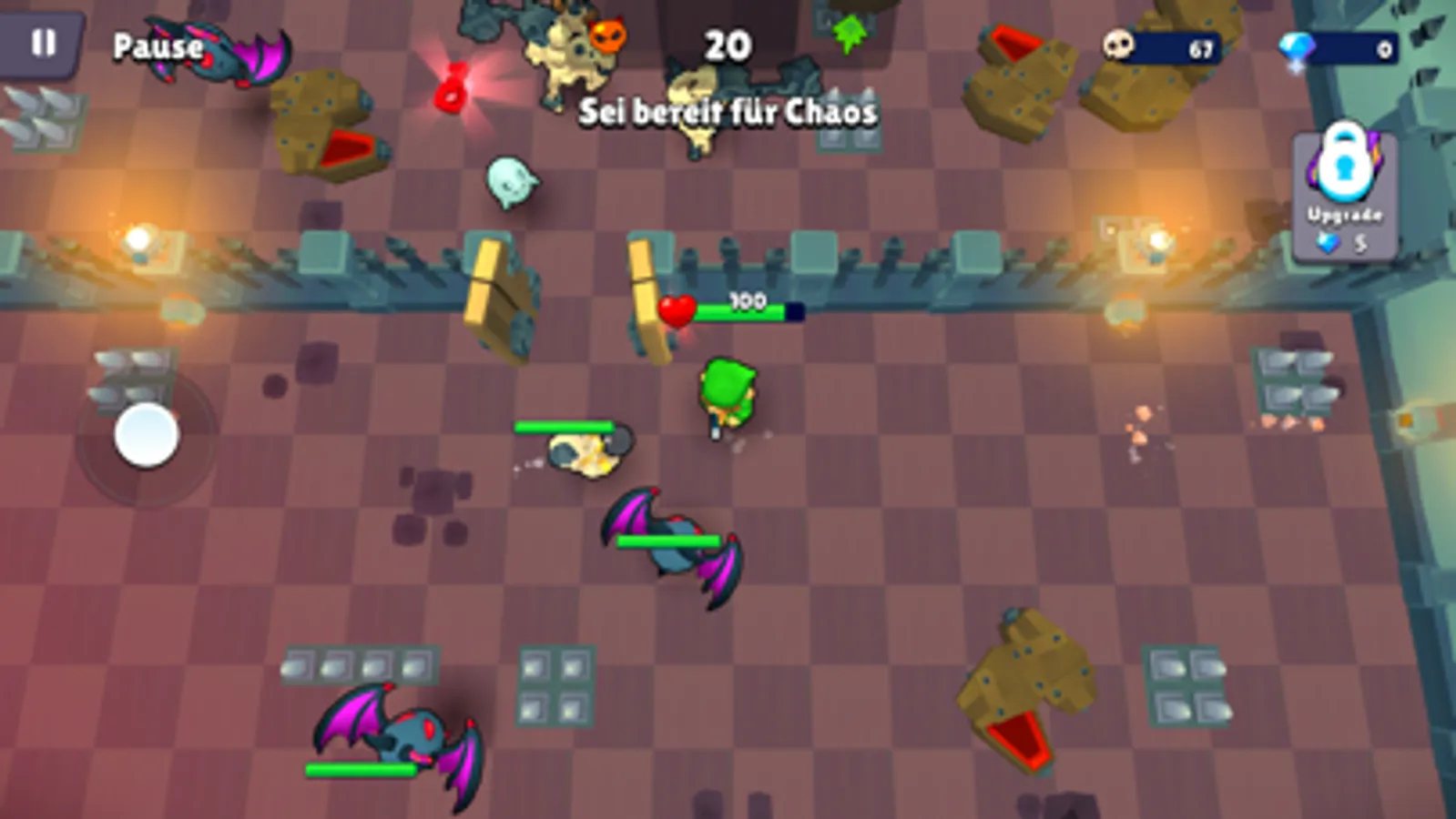When you defeat enemies they drop diamonds, which you can exchange for upgrades to face the final boss in the last room.