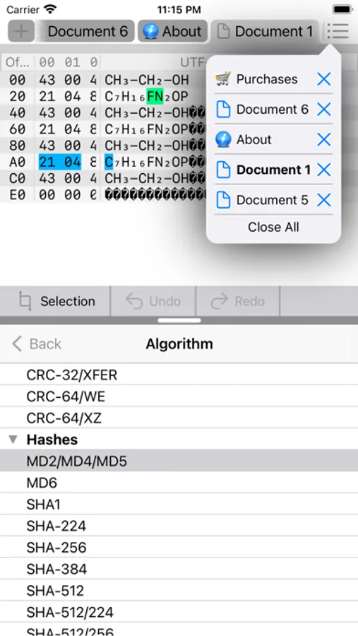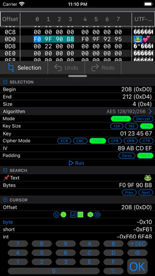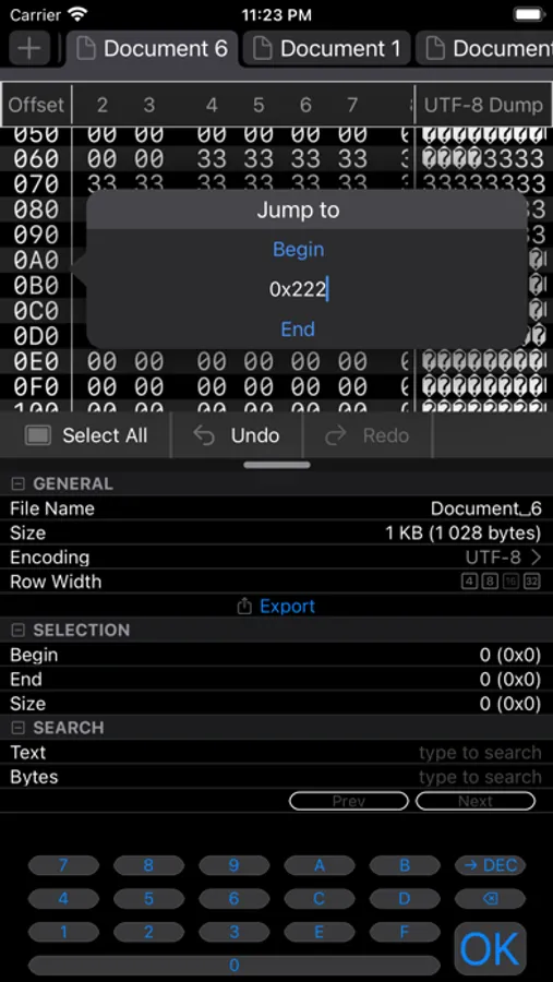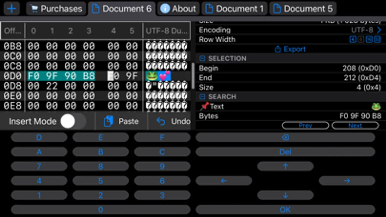 • Choose from Decimal or Hexadecimal formats for the file offset values by tapping on the Offset column header