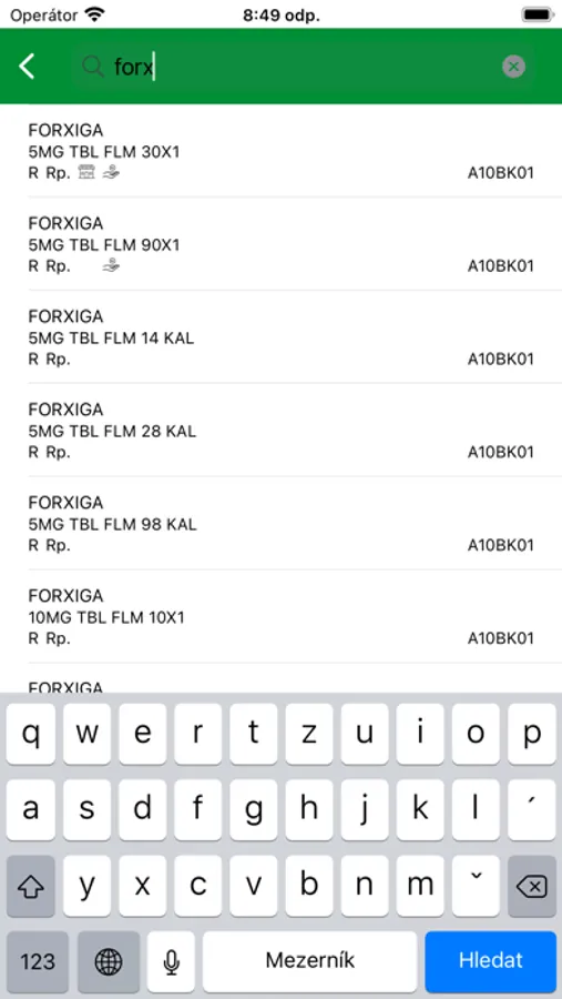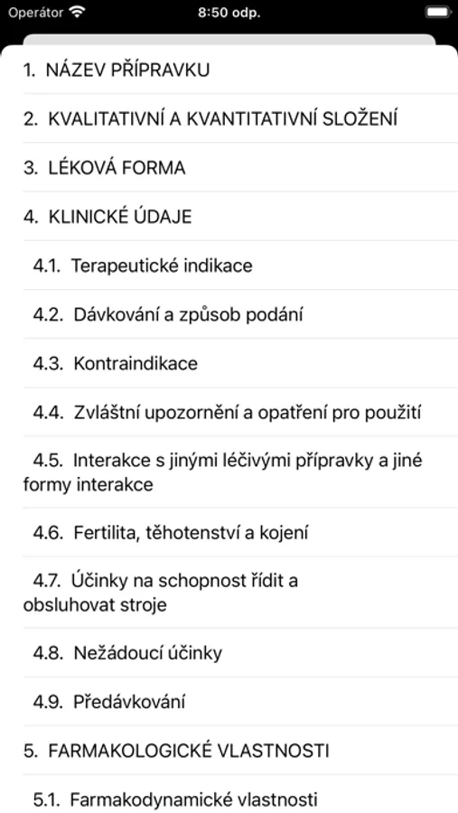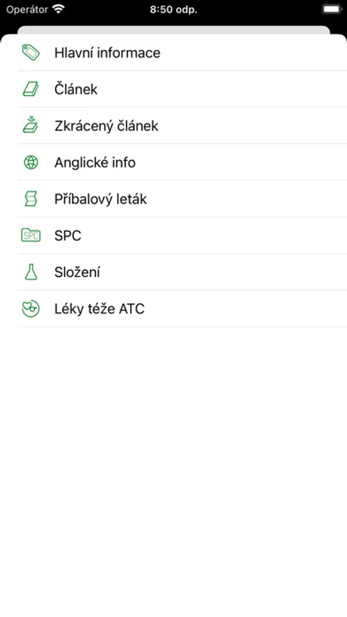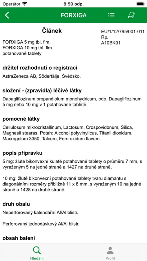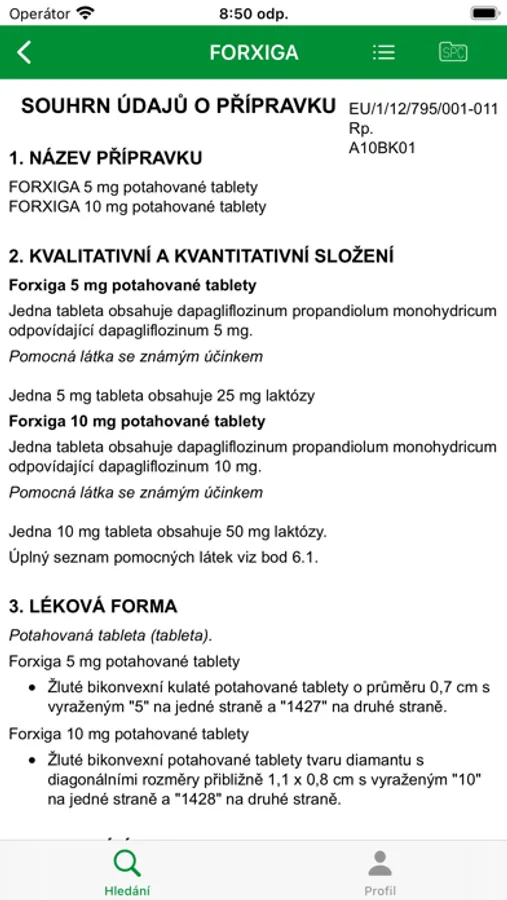 Aplikace umožňuje vyhledávání v online databázi, v níž jsou hlavní informace o léčivých přípravcích jako například: