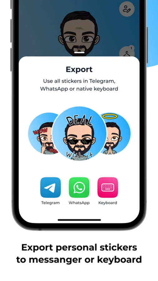 With only one photo, StickerFace AI automatically generates your cartoon avatar. Customize the facial features, hair and skin with the Creator Kit. Plus, you get a personalized sticker pack of 20+ emotions. Export the stickers to Telegram for a more immersive texting experience.