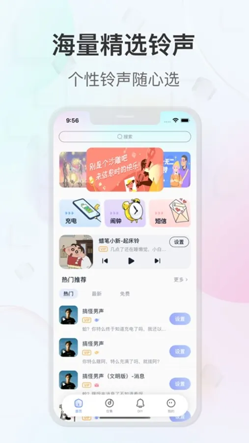 海量铃声嗨不停-趣铃是一款集充电、断电、闹钟、短信于一体的手机铃声应用,多种提示音快速设置,热门流行、海量铃声应有尽有,让你的来电与众不同,告别单一的系统铃声。