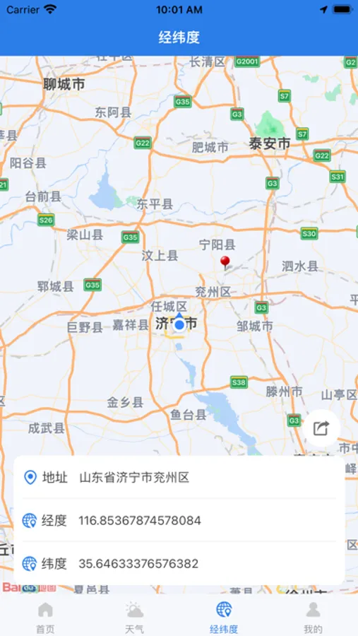 地图导航-天气经纬度地址查询是一款地图导航app,他可以查询当地天气,以便及时配置好出行,同时可以通过点击地图查询点击地点的经纬度,是一款非常好用的app