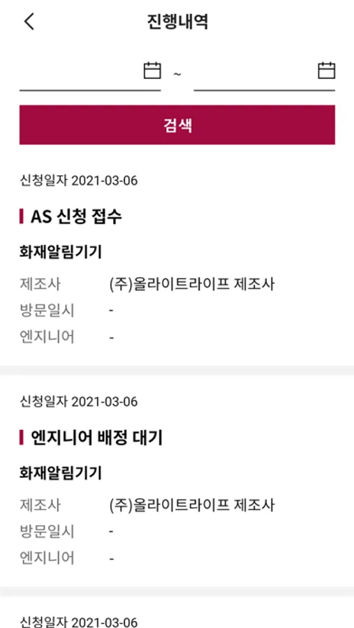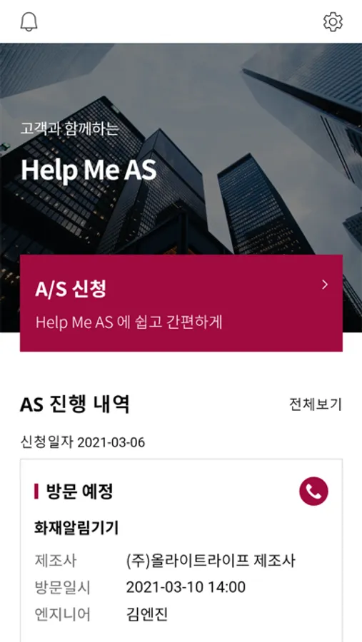 등록된 제조사를 확인 하고 AS를 접수하면 전문엔지니어를 매칭하여 빠른 AS처리를 도와드립니다.