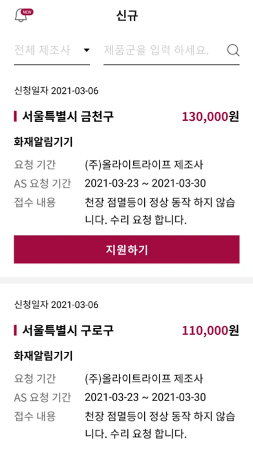 - 회원가입 시 등록된 제조사 활동지역을 확인, 승인 후 사용이 가능합니다.