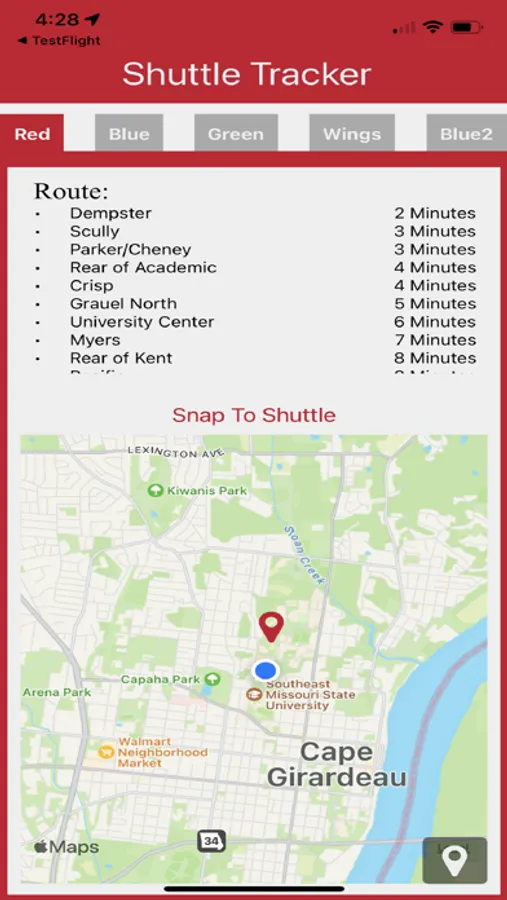 SEMO Shuttle Tracker Screenshots