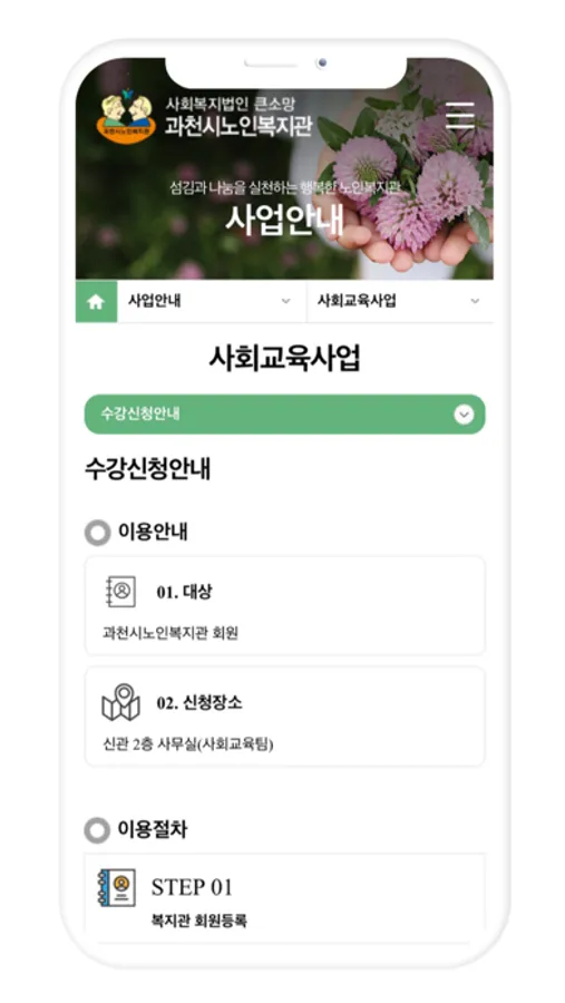 과천시 노인 복지관전용 정보제공을 위한 앱 입니다.